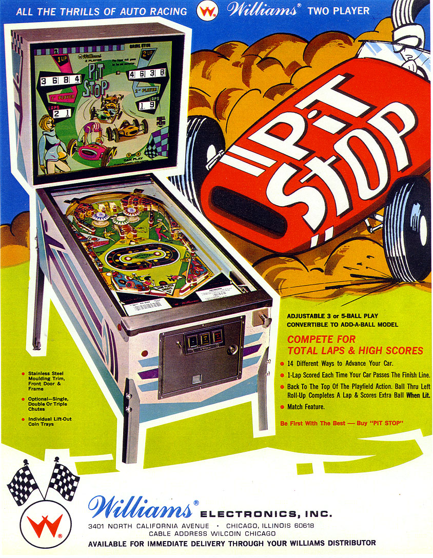 Pit Stop is a pinball machine from October 1968, manufactured by Williams Electronic Games, Inc.