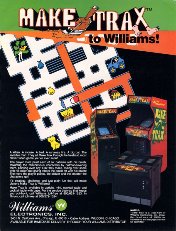 Player controls a paintbrush to paint paths within a maze. The player is harassed by two fish which can be temporarily destroyed by running them over with a one of two paint rollers located near the maze center. A critter occasionally emerges to leave footprints on painted areas which must then be repainted.