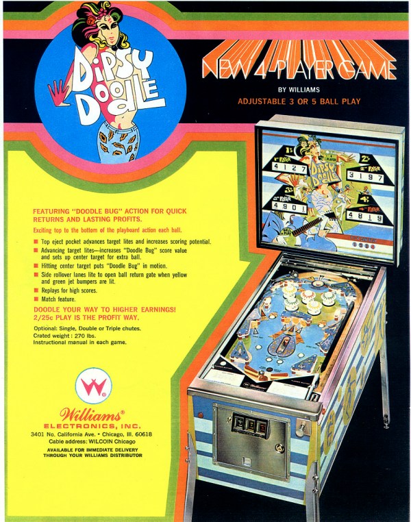 Dipsy Doodle is a pinball machine from December 1970, manufactured by Williams Electronic Games, Inc.