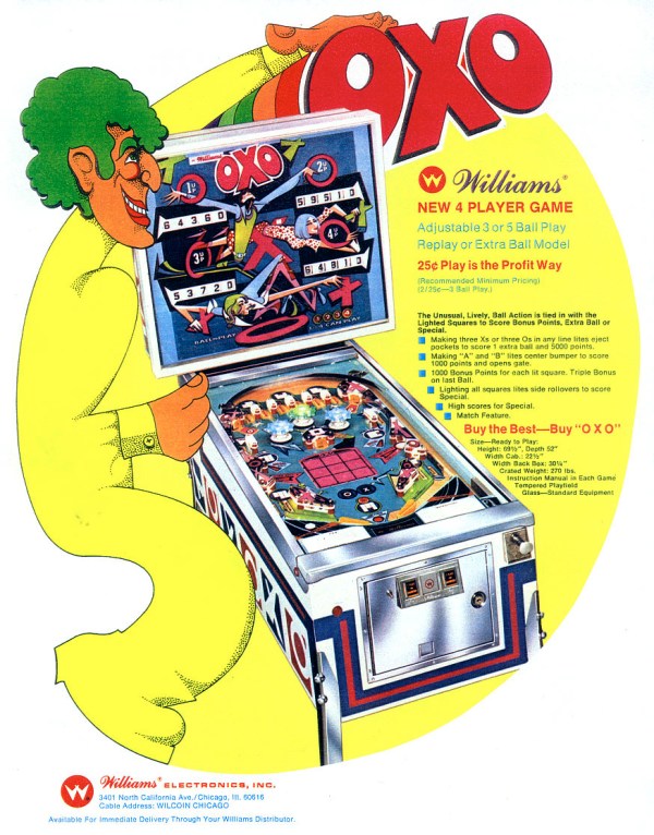 OXO is a pinball machine from August 1973, manufactured by Williams Electronic Games, Inc.