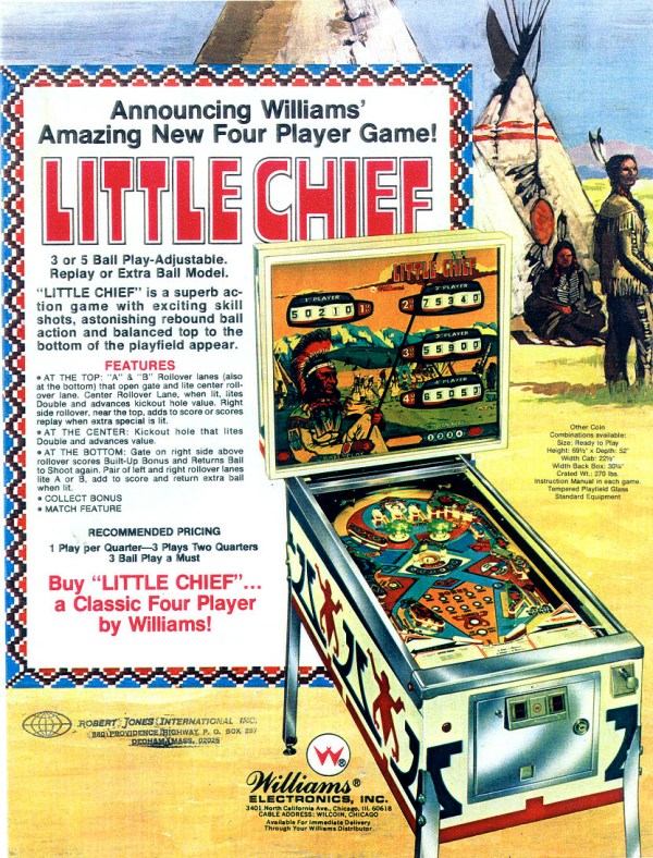 Little Chief is a pinball machine from September 1975, manufactured by Williams Electronic Games, Inc.